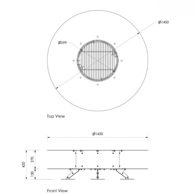 With an impressive diameter of 1450mm and a height of 420mm, the Discus provides ample space for a roaring fire, making it ideal for larger gatherings. Equipped with a grill, it easily transforms into a functional cooking station, perfect for preparing meals over an open flame. A closing disk is included to cover the combustion chamber, preventing residual material from escaping during rain or wind.