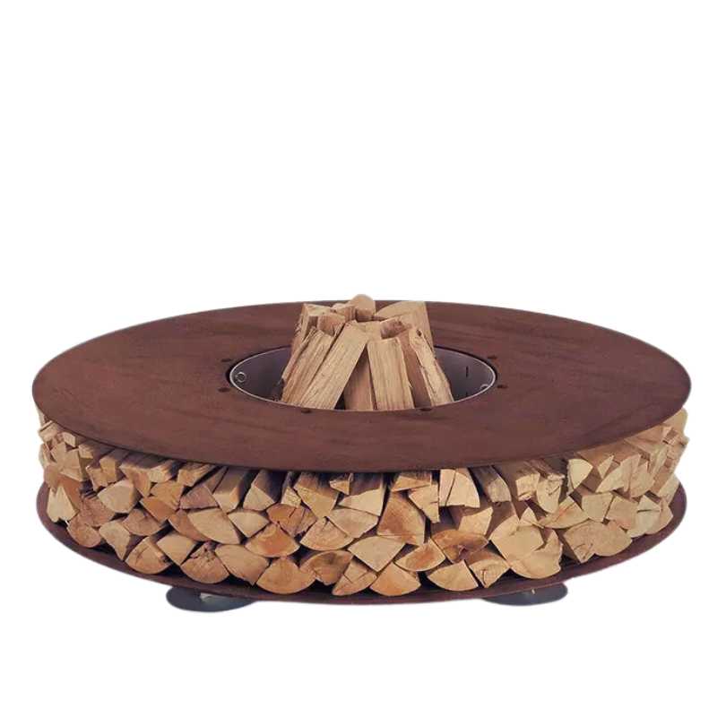 Additionally, the Discus features built-in storage for firewood and can double as a convenient surface when not in use. Crafted from raw mild steel, this fire pit develops a natural patina over time, adding character and charm that evolves with your outdoor space.