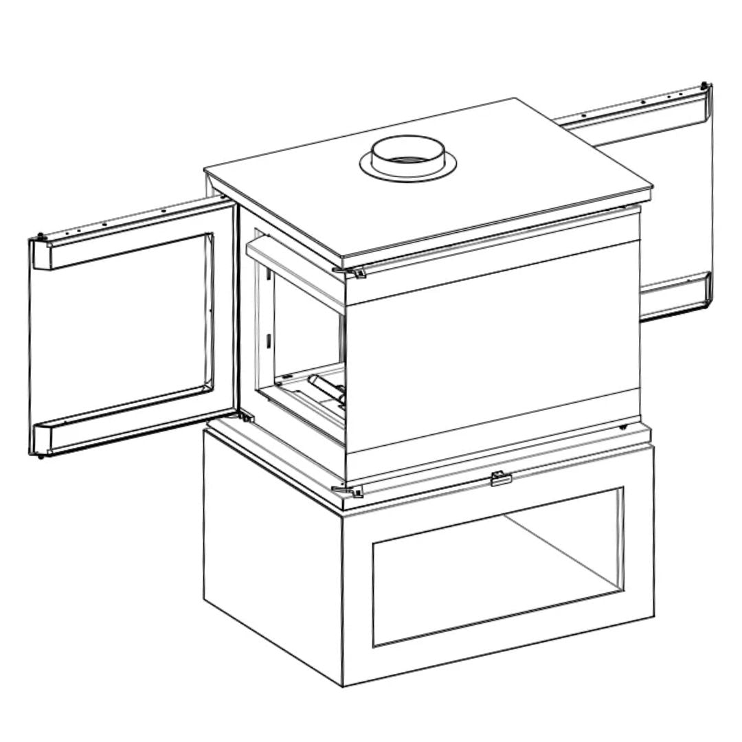 This unit delivers a nominal output of 12 kW, a maximum of 14 kW, and is rated to heat approximately 336 m³ of space. With side-glass panels offering expansive views of the flames, and an integrated log base stand, it’s as much a design feature as a heating appliance.
