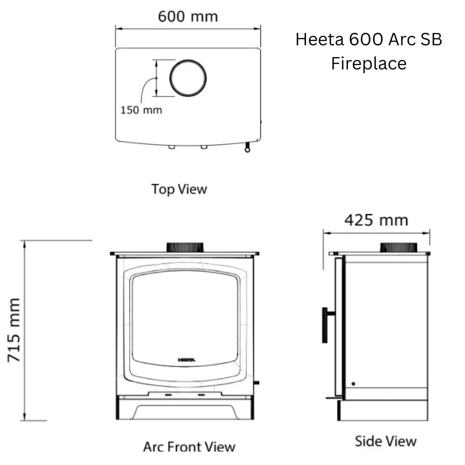 The Heeta 600 Arc SB fireplace is a premium wood-burning stove that blends elegant design with powerful, efficient heating. With its gracefully arched bevelled door, clean modern lines, and robust construction, this unit enhances both contemporary and traditional interiors alike.