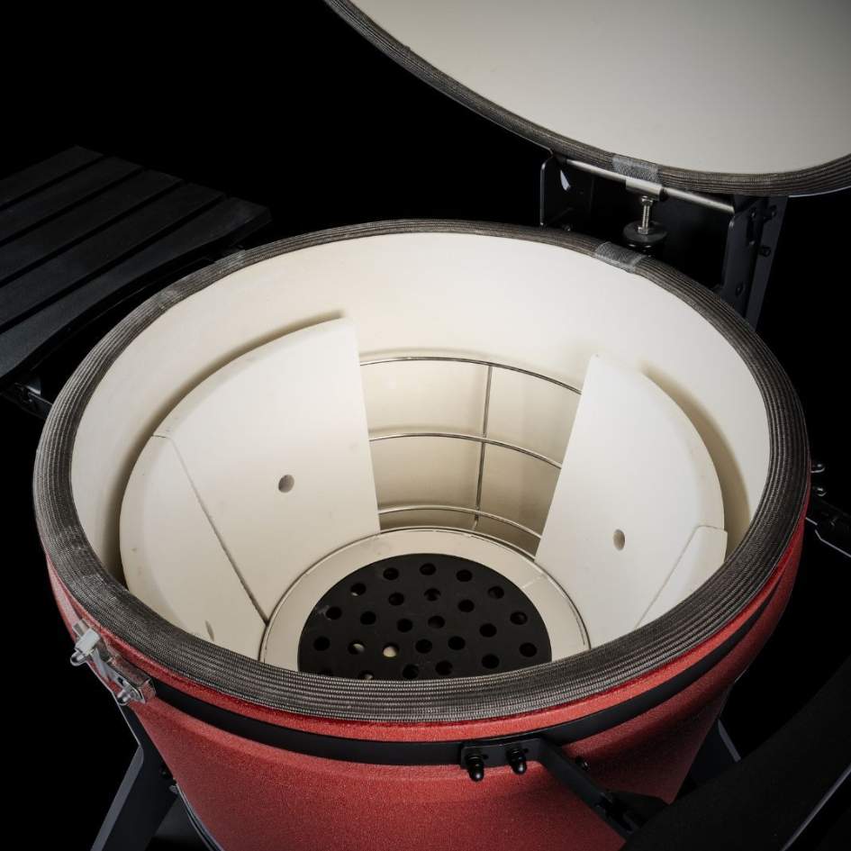Included: The complete Conquer Multizone System, featuring a multilevel frame, two half-moon ceramic deflector plates, and two half-moon stainless steel grids. Core Gen 4 Upgrades: - Thicker 30mm Ceramic Build & Segmented Firebox - Easy Air-Lift Lid Hinge & Integrated Lid Lock - Removable Stainless-Steel Ash Drawer System - Innovative Trolley Stand with Integrated Bottom Shelf