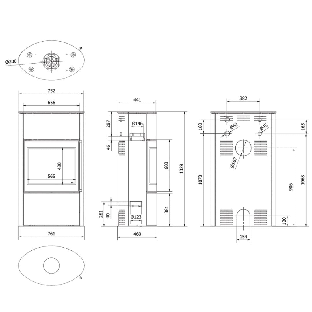 Features: Panoramic glass view, air‑wash glass cleaning system, top or rear flue exit, removable ash‑box, 5‑year warranty