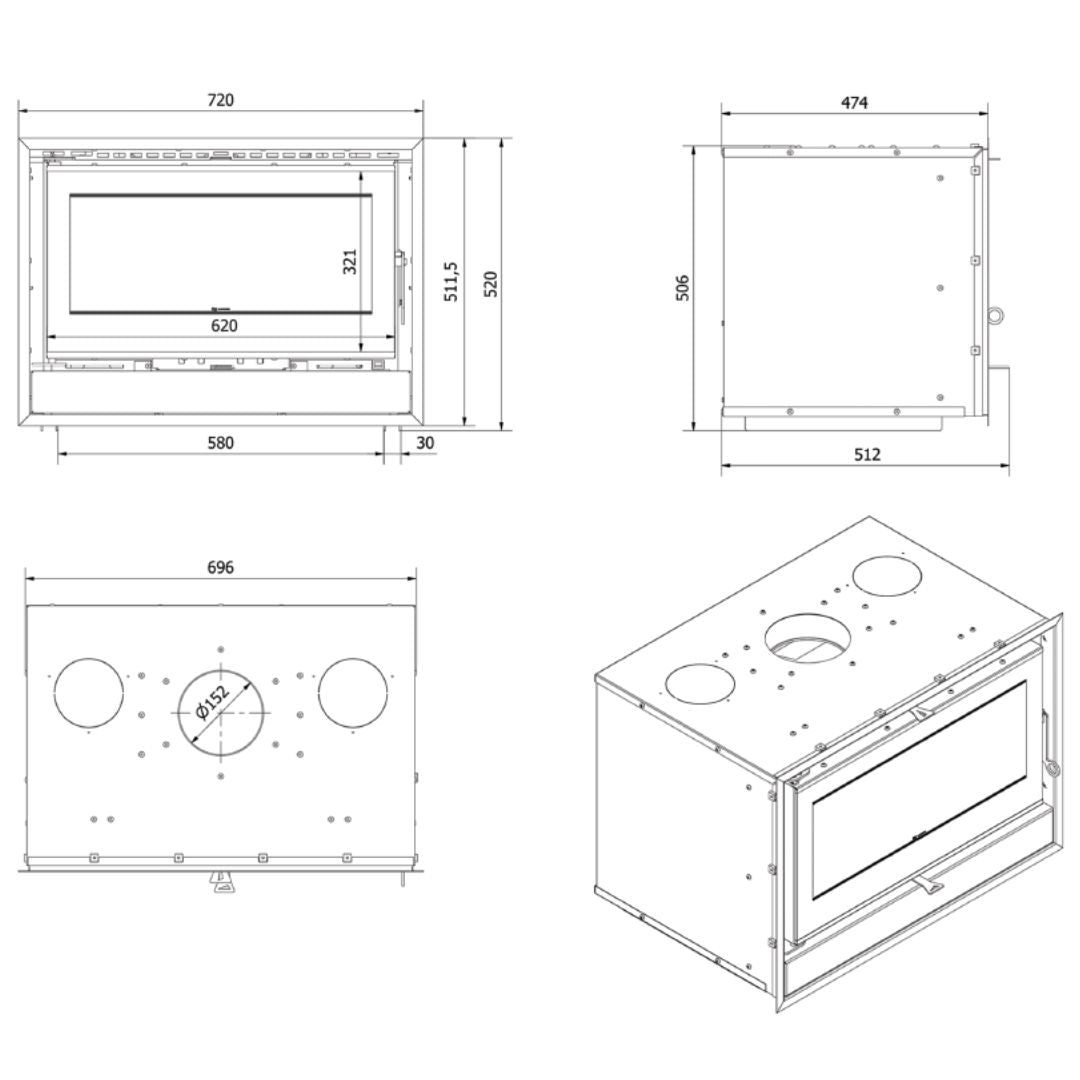 Dimensions (WxHxD): 720 × 474 × 520 mm