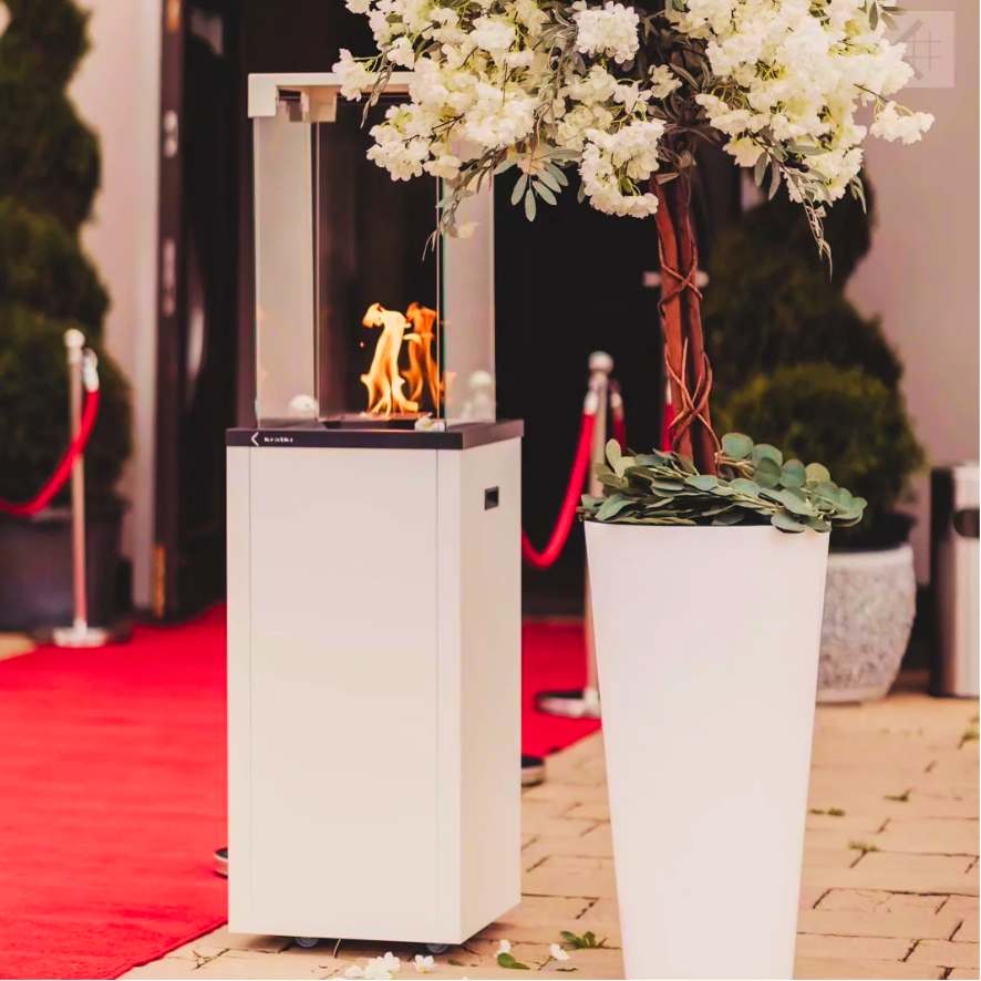 The Kratki PATIO Light Gas Fireplace is a sleek, modern freestanding gas fireplace designed for both style and mobility. Its open design requires no flue installation, making it an ideal choice for various outdoor or semi-covered spaces. Equipped with discreet wheels, the unit can easily be moved across flat surfaces as needed.
