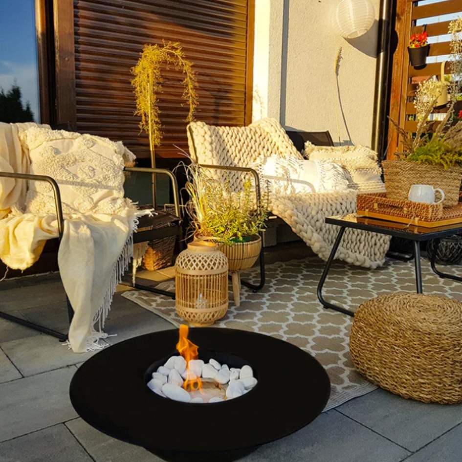 The NovaFlame Freestanding Universe Biofuel Fireplace can be moved around and positioned on your patio or living and dining room.