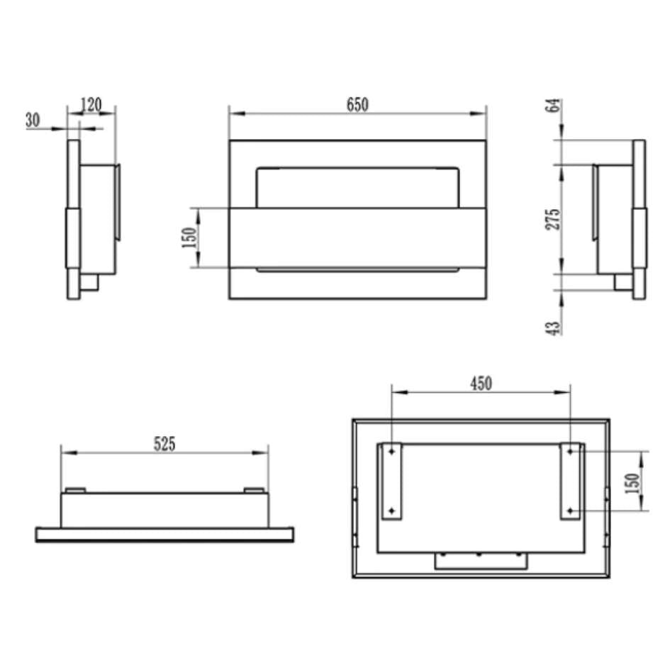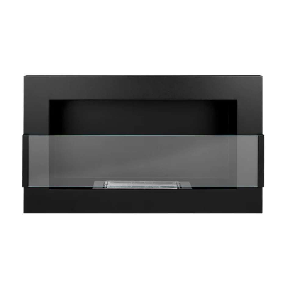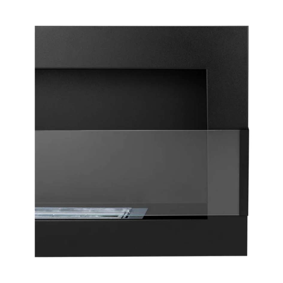The NovaFlame Hanging Biofuel Fireplace 650x400 is a matte black wall hung fireplace.