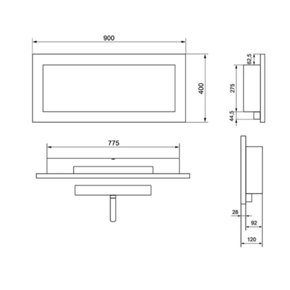 The NovaFlame Slimline Hanging Biofuel Fireplace 900x400 is a wall hung fireplace.