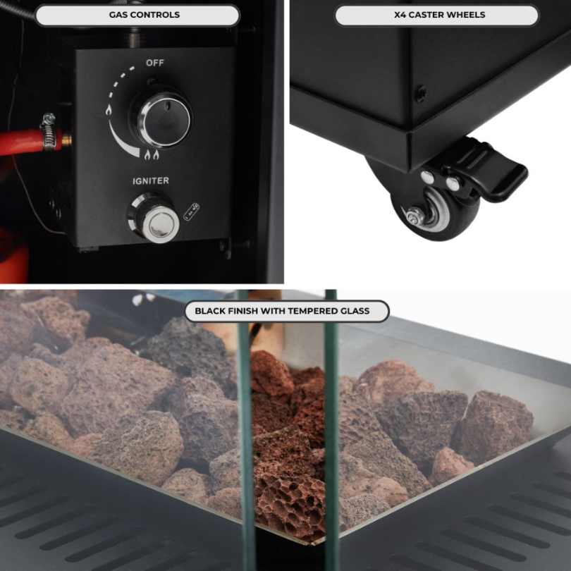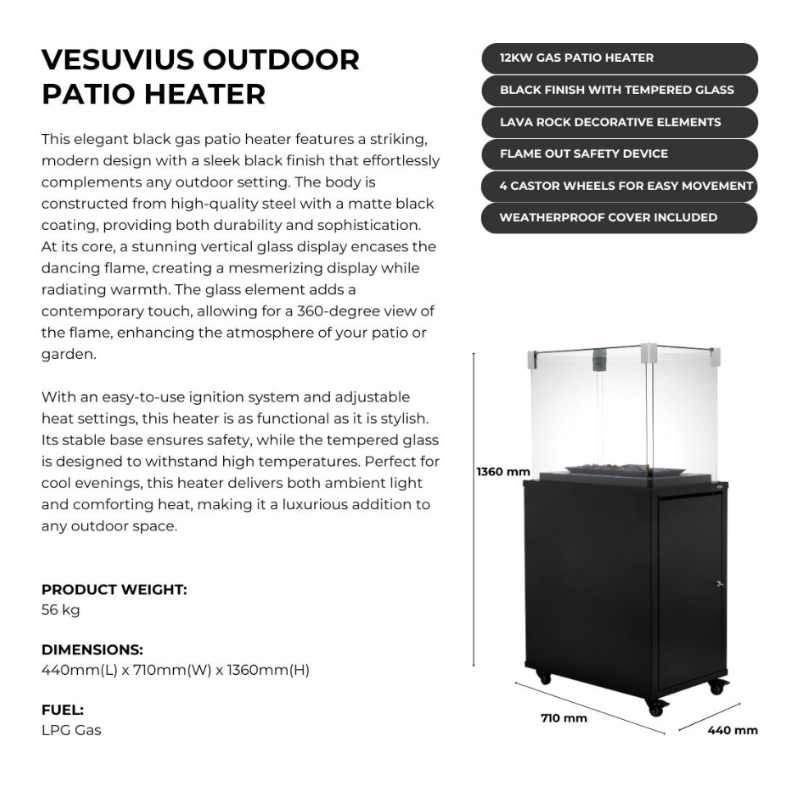 Transform your outdoor spaces with the Vesuvius Gas Fireplace, a sleek and versatile heating solution. Equipped with a highly efficient ceramic burner and four-sided tempered glass windows, it delivers stunning visual effects that light up any area with elegance. Perfect for gardens, patios, terraces, or even outdoor restaurants, this fireplace adds warmth and ambiance to any occasion.